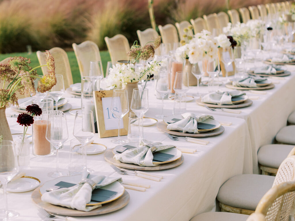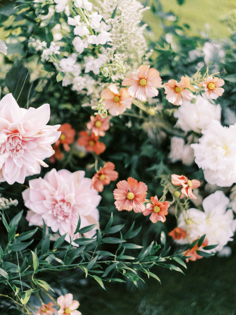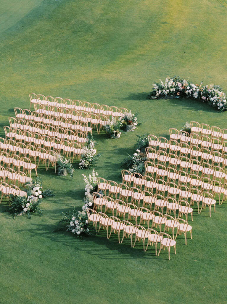 These colors allowed the florals to feel seamless within the environment, enhancing the setting rather than competing with it. Against the lush green lawn and expansive coastal backdrop, the arrangements felt calm, romantic, and timeless.